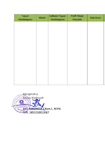 Kepala Madrasah                                                                                                 Guru Mata Pelajaran