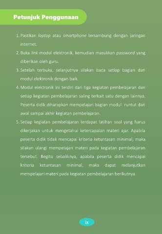 4.Modul elektronik ini terdiri dari tiga kegiatan pembelajaran dan