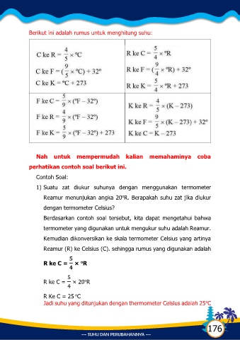 Reamur (R) ke Celsius (C). sehingga rumus yang digunakan adalah