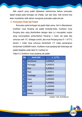 bertambah 0,000009 meter. Koefisien muai panjang dari beberapa zat