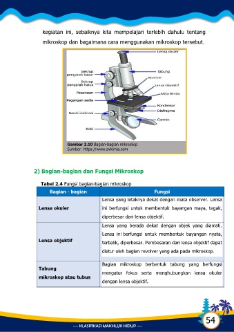 Tabel 2.4 Fungsi bagian-bagian mikroskop