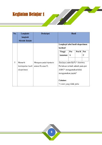 kesimpulan hasil antara H0 atau H1 Perlakuan terbaik adalah pada pot