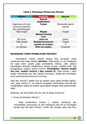 Tabel 2. Perbedaan Mitosis dan Meiosis