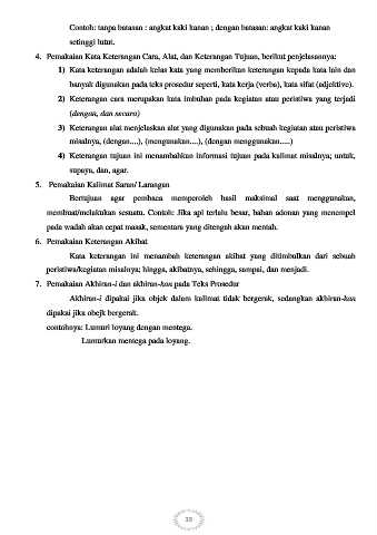 4. Pemakaian Kata Keterangan Cara, Alat, dan Keterangan Tujuan, berikut penjelasannya: