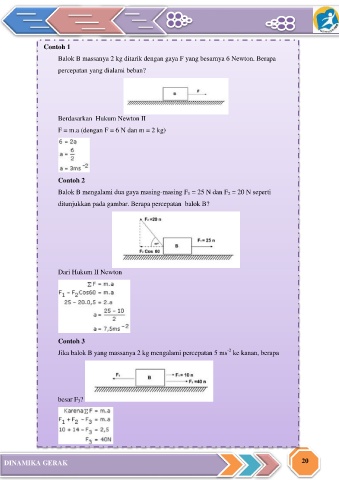 Balok B mengalami dua gaya masing-masing F 1 = 25 N dan F 2 = 20 N seperti