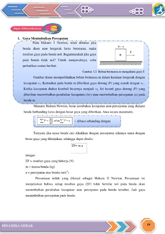 diberikan menimbulkan perubahan kecepatan (∆v) atau menimbulkan percepatan (a) pada
