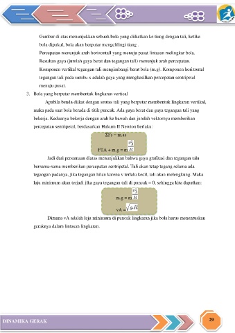 Dimana vA adalah laju minimum di puncak lingkaran jika bola harus menenruskan