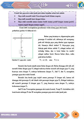 berat benda sehingga T 3 dan W merupakan pasangan gaya aksi-reaksi jarak jauh.