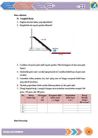 5. Luncurkan beban pertama (m1) dari ujung atas rel hingga mengenai balok kayu