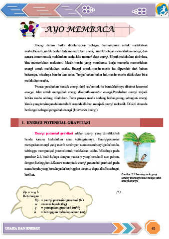 gambar 2.1, buah kelapa dengan massa m yang berada di atas pohon,