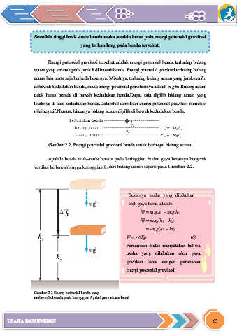di bawah kedudukan benda, maka energi potensial gravitasinya adalah m g h1.Bidang acuan