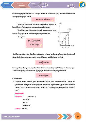 bertambah panjang sebesar ∆x1. Dengan demikian, usaha total yang Ananda berikan untuk