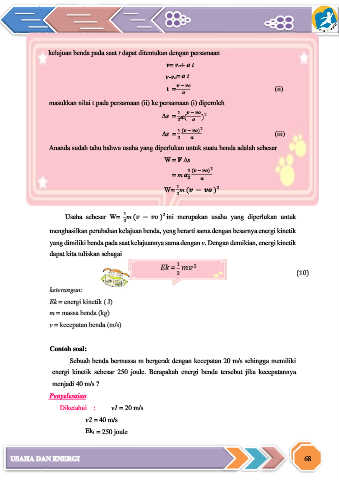 yang dimiliki benda pada saat kelajuannya sama dengan v. Dengan demikian, energi kinetik