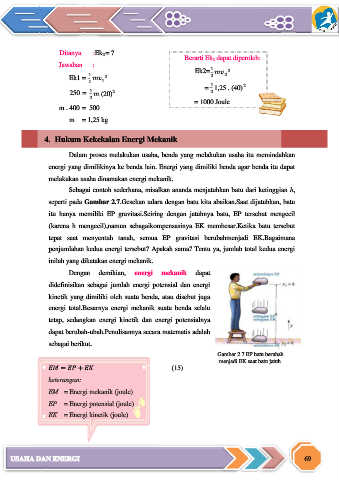 (karena h mengecil),namun sebagaikompensasinya EK membesar.Ketika batu tersebut
