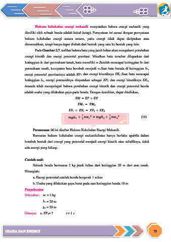 Persamaan 16 ini disebut Hukum Kekekalan Energi Mekanik.