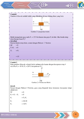 Balok mengalami gaya tarik F 1 = 15 N ke kanan dan gaya F 2 ke kiri. Jika benda tetap