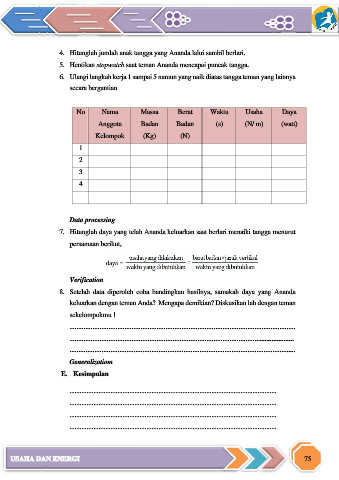 7. Hitunglah daya yang telah Ananda keluarkan saat berlari menaiki tangga menurut