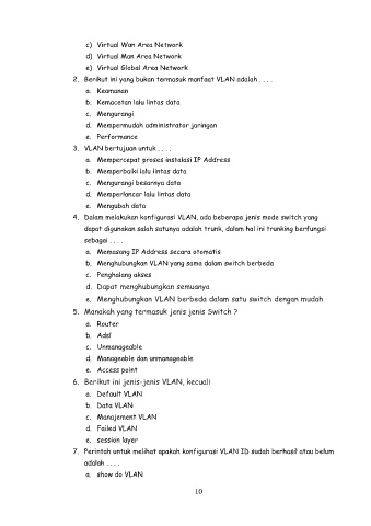 2. Berikut ini yang bukan termasuk manfaat VLAN adalah . . . .