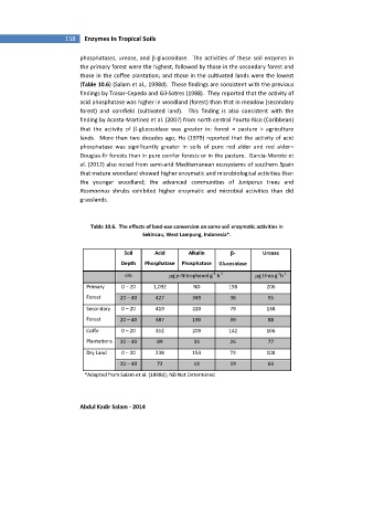 Table 10.6. The effects of land-use conversion on some soil enzymatic activities in