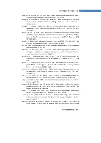 Nasution, U. 1986. Origin and range of enzymes in soils. pp.51-80. In R.G. Burns (Ed.). Soil