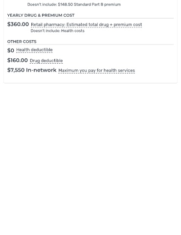 $360.00 Retail pharmacy: Estimated total drug + premium cost