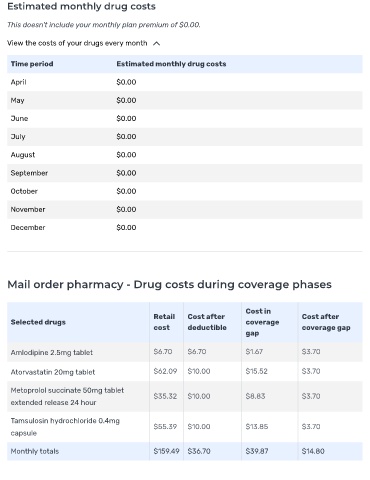 Estimated monthly drug costs