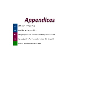 A1 California's Birthday Rule A2 Switching Medigap policies B1 Medigap premiums from California Dept. of Insurance B2 High-deductible Plan F premiums from CSG Actuarial C Benefits designs of Medigap plans