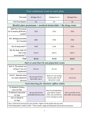 **Part B deductible in 2020 is $198. ***One-month's supply of medications will be left at end of year