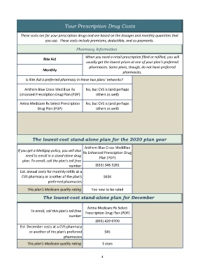 These costs are for your prescription drugs and are based on the dosages and monthly quantities that