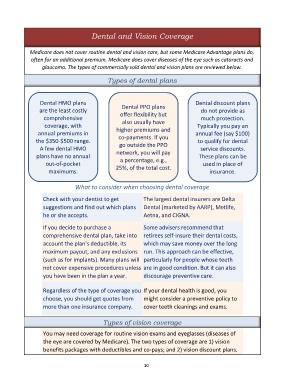 glaucoma. The types of commercially sold dental and vision plans are reviewed below.