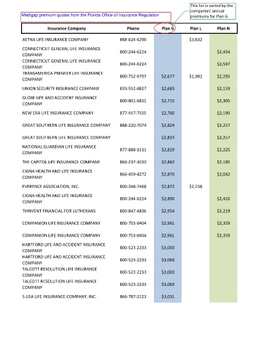 Medigap premium quotes from the Florida Office of Insurance Regulation premiums for Plan G