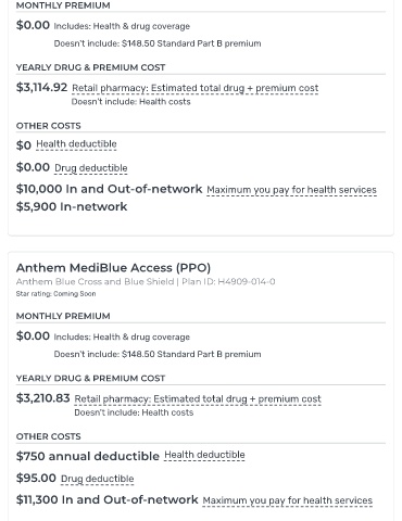 $3,114.92 Retail pharmacy: Estimated total drug + premium cost