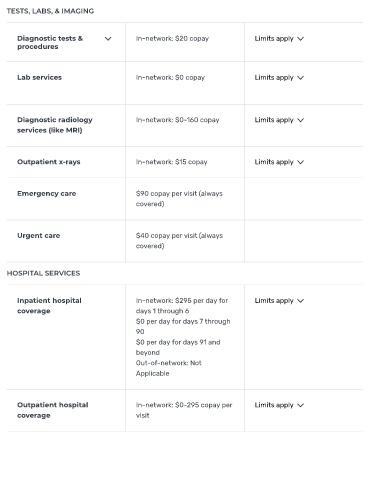 Outpatient hospital In-network: $0-295 copay per Limits apply