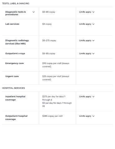 Lab services $0 copay Limits apply