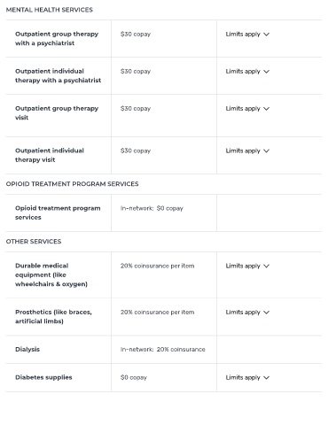 Prosthetics (like braces, 20% coinsurance per item Limits apply