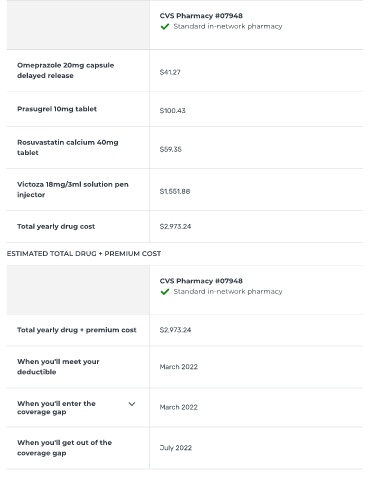 Total yearly drug + premium cost $2,973.24