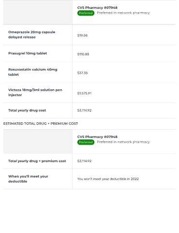 Total yearly drug + premium cost $3,114.92