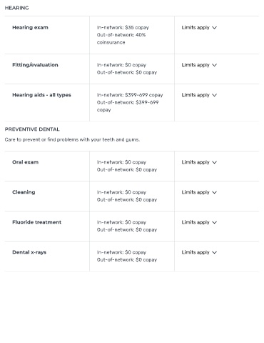 Hearing aids - all types In-network: $399-699 copay Limits apply