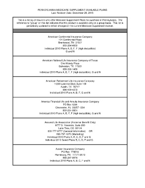 This is a listing of Insurers who offer Medicare Supplement Plans for purchase in Pennsylvania. The