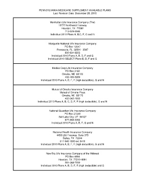 Individual 2010 Plans A, B, C, D, F, F (high deductible), G and N