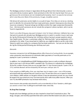 The Medigap premiums shown in Appendices B1 though B4 are from CSG Actuarial, a service