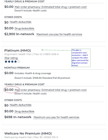 $0.00 Mail-order pharmacy: Estimated total drug + premium cost