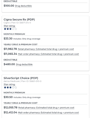 $11,982.78 Retail pharmacy: Estimated total drug + premium cost