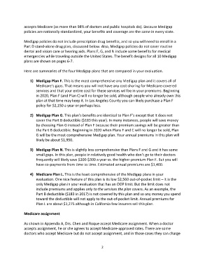 Here are summaries of the four Medigap plans that are compared in your evaluation.