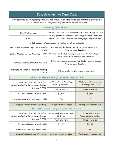 Plans' est. annual costs for your Rx drugs at CVS