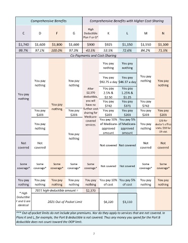 F and G are 2021 Out-of-Pocket Limit $6,220 $3,110