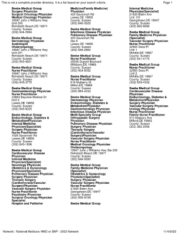 Rehoboth Beach,DE 19971                 Beebe Medical Group                     County: Sussex