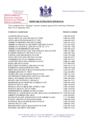 These companies have “Medigap” insurance products approved for marketing in Delaware.