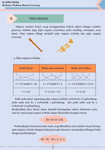 atas ke n pada pipa organa terbuka dapat ditentukan dengan rumus