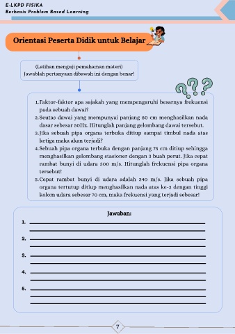 5. Cepat rambat bunyi di udara adalah 340 m/s. Jika sebuah pipa